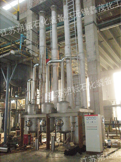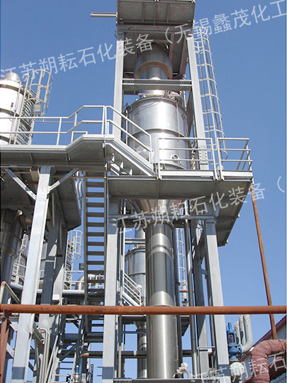 需濃縮的料液由泵送入加熱管頂部,沿著加熱管內壁形成液膜向下流動。在這個過程中,由于管外的加熱,管內液膜開始沸騰并部分蒸發(fā)。在列管下部分及其下游的分離器中,剩余的液體和蒸汽得以分離。