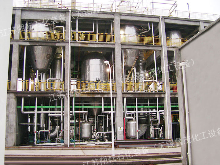 三效蒸發(fā)器采用三效同時蒸發(fā),二次蒸汽得到反復作用,既節(jié)省了鍋爐的投資,又節(jié)約能源消耗。