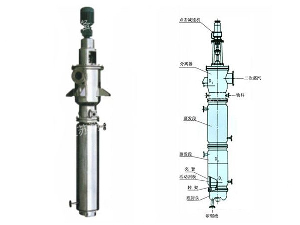刮板式薄膜蒸發(fā)器是利用高速旋轉(zhuǎn)將液體分布成均勻薄膜而進行蒸發(fā)或蒸餾的一種高效蒸發(fā)、蒸餾設(shè)備,也可進行脫臭、脫泡反應(yīng)及加熱、冷卻等單元操作,可適用于中、西制藥、食品、輕工、石油、化工、環(huán)保等行業(yè)。